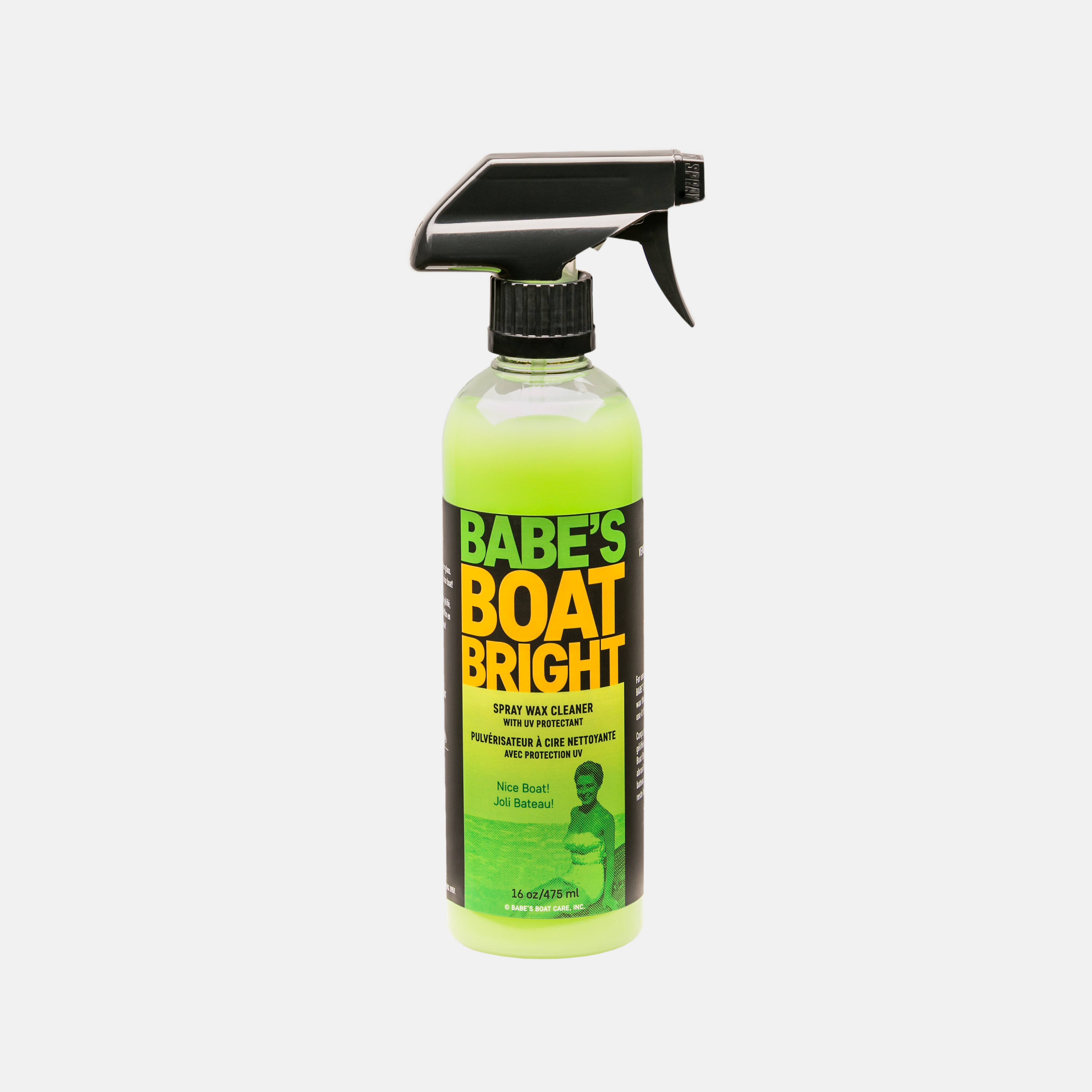 BABE’S Boat Bright is a non-abrasive formula designed to clean and protect your boat’s surface. Boat Bright enhances the finish of your boat by applying a light wax surface plus a UV protectant. No pre-washing necessary. Simply spray a light mist on the surface and wipe off with a clean towel. BABE’S Boat Bright can be used on gelcoat, metal, glass or vinyl surfaces.