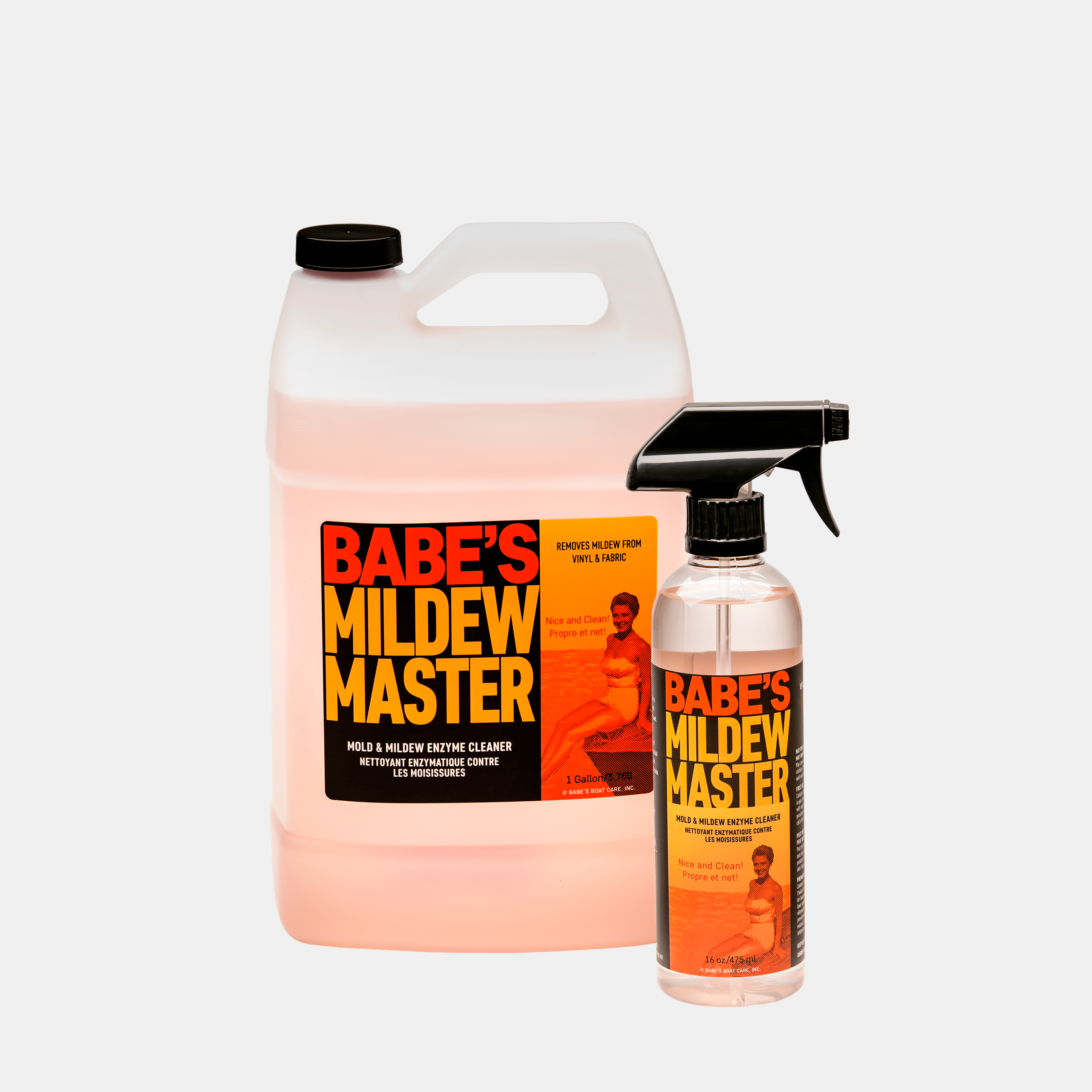 BABE’S Mildew Master removes mildew from carpet and hard surfaces. Mildew Master combines enzymes and peroxide to build an effective yet environmentally safe cleaner specifically suited for the extreme conditions of marine environments.