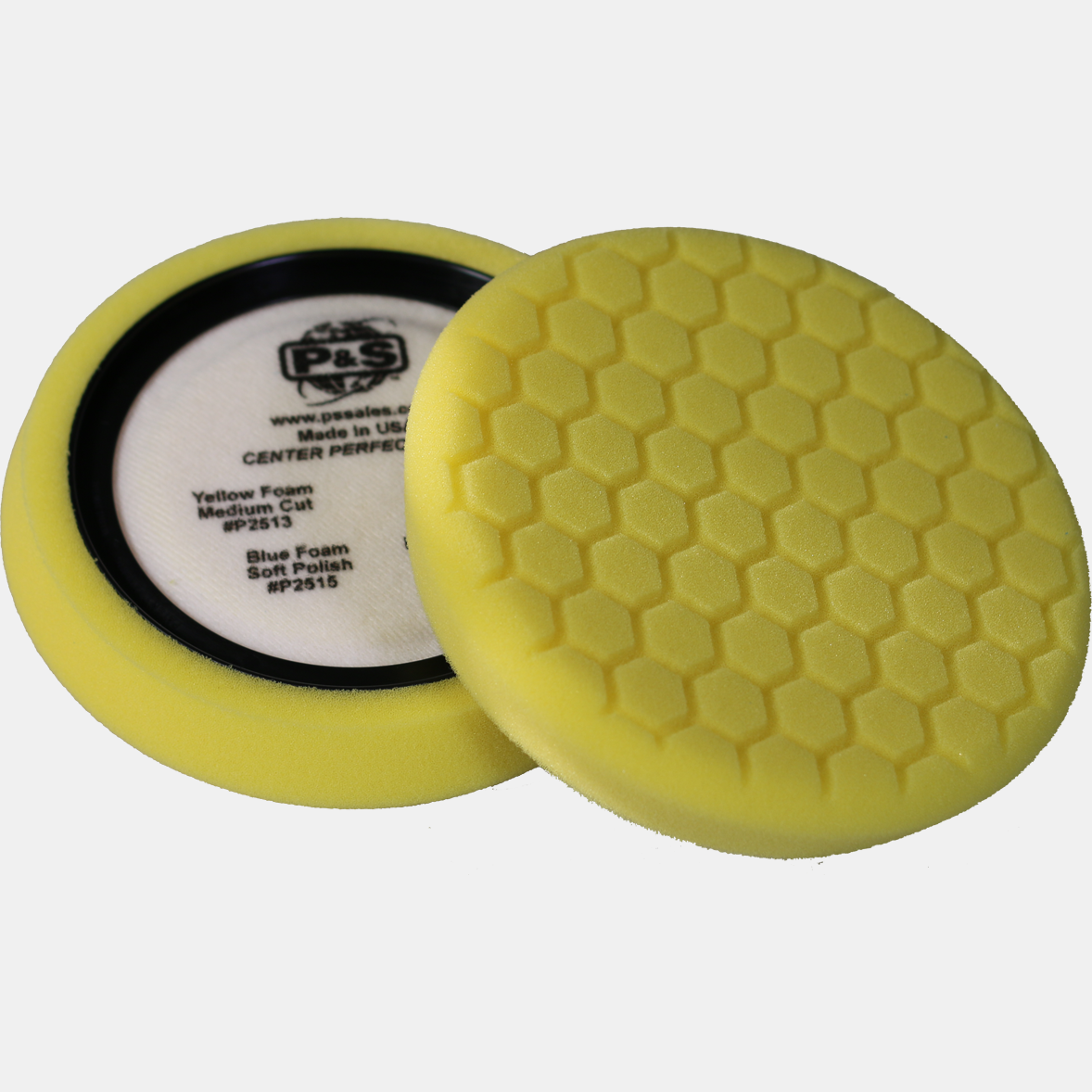 The P&S Center Perfect Pad System features a unique plastic centering ring installed on each pad, custom flexible back up plate and smooth running low profile foam pads. The #P2513 Foam Center Perfect Cutting Pad - Yellow is used for moderate to heavy compounding to correct serious paint imperfections.