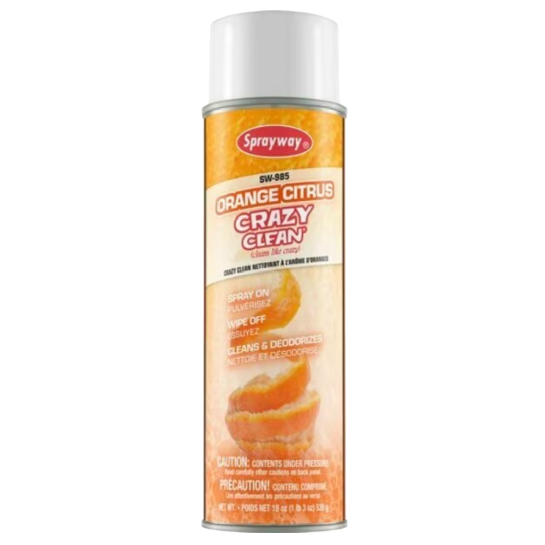 An amazing all natural citrus multi purpose aerosol foaming cleaner, degreaser and deodorizer. Crazy Orange is particularly effective at cleaning automotive grease and oil from engine compartments, underbody