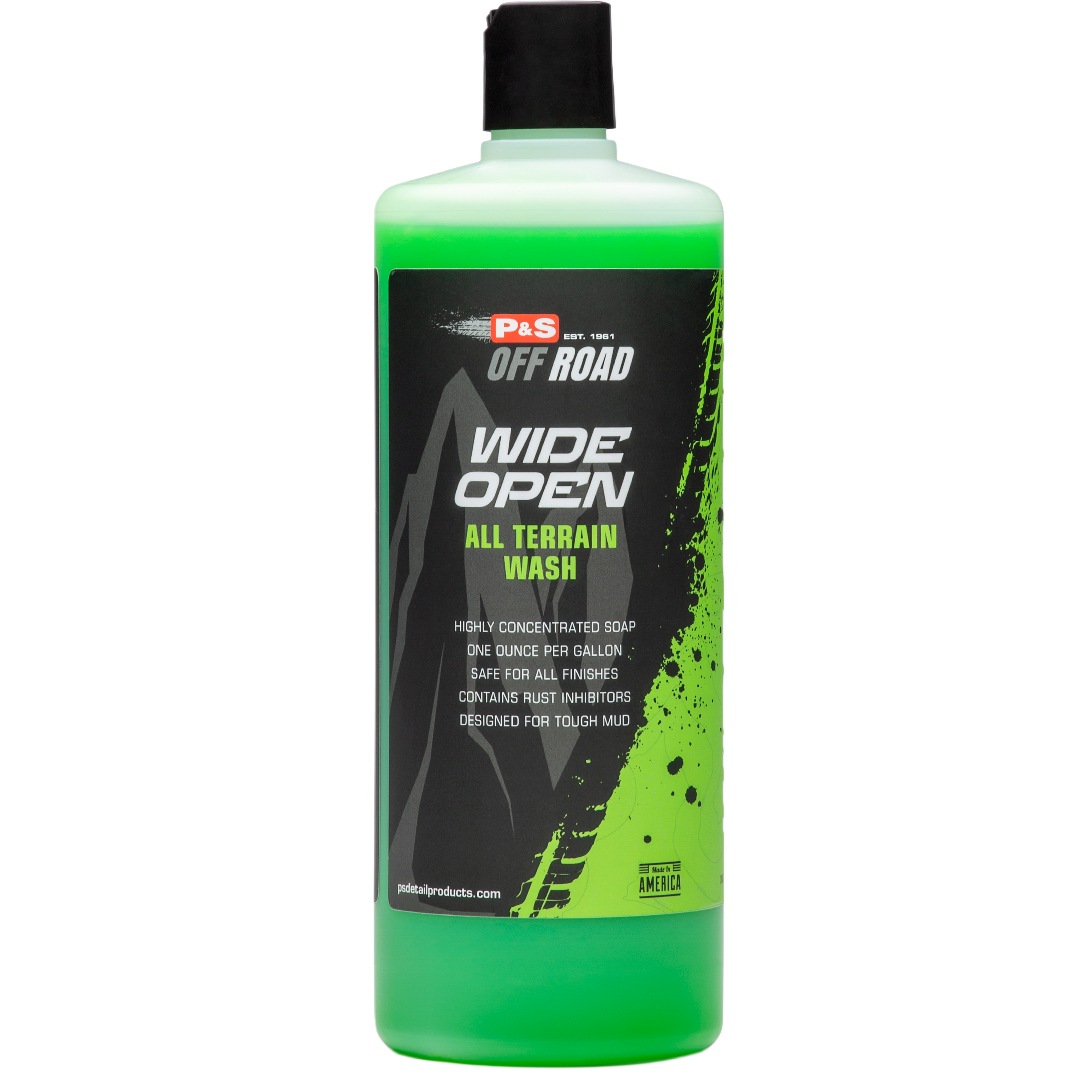 Highly concentrated, high powered OFF ROAD Wash Soap.  Perfect for every day washing on ATV's, dirt bikes, off-road trucks, and more.  Wide Open is pH balanced but still strong enough to get the job done. Wide Open Wash creates a ton of suds to quickly infiltrate heavy dirt and mud.  The cleansing power of Wide Open will clean surfaces but leave lubrication intact. Easy on the finish of vehicles and easy on your hands.
